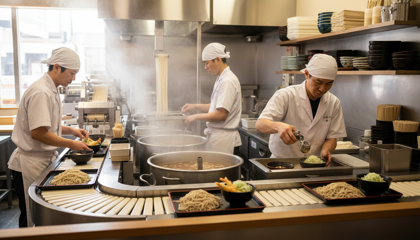 伝統的な日本そばのクオリティを守りつつ、最新のテクノロジーや独自の出店戦略を駆使する企業の裏側に迫ります。