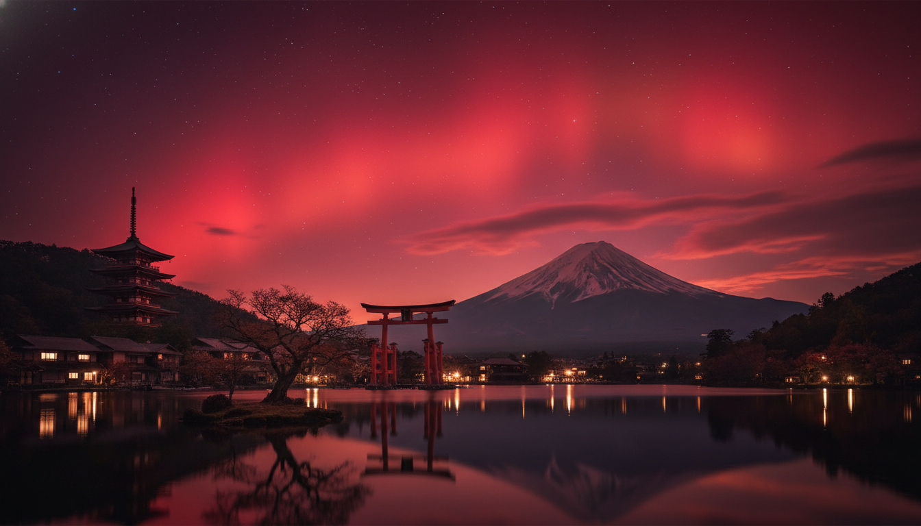 夜空が赤く染まるその神秘的な光景は、自然が織りなす究極のアートと言えるでしょう。